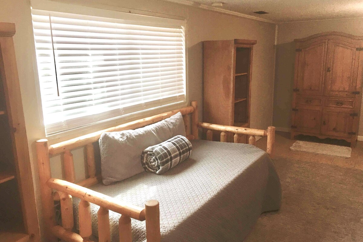 Todo el nivel inferior de la casa con entrada privada. Impresionantes vistas de Pikes Peak en el corazón de Black Forest. Esta es una gran ubicación tranquila con fácil acceso a la I-25, la autopista 83 y todas las cosas divertidas que hacer en Colorado Springs. ¡Vista a Pikes Peak y a la Academia de la Fuerza Aérea desde el patio privado de la planta baja! Dos dormitorios con camas tamaño queen, colchón de aire doble también disponible. Baño privado, sofá, sofá de dos plazas, wifi, TV, nevera. Acceso a equipos de fitness. El espacio no incluye cocina.