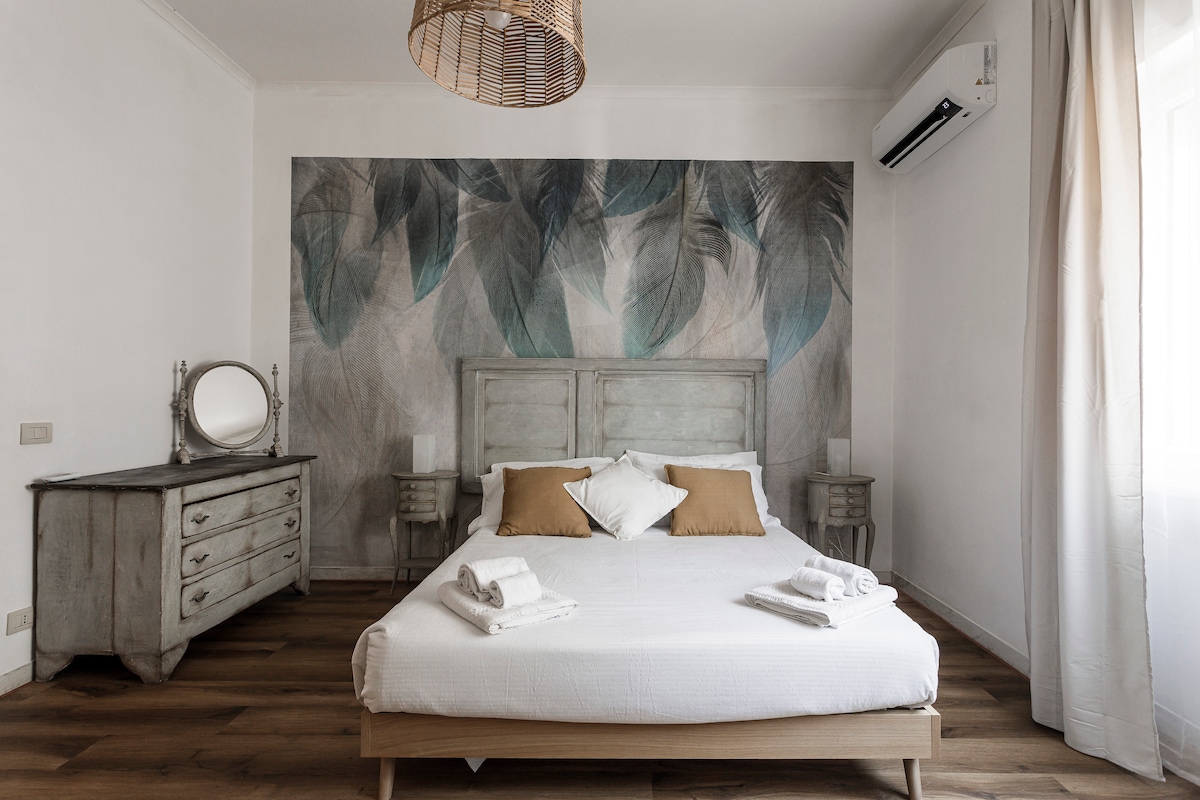 Este loft unico en su especie, rústico pero elegante, está lleno de detalles en madera, metal y piedra, todo hecho a mano por Giulio, su dueño. La fabulosa terraza te dejará sin aliento. ¿Qué tal un café en pantuflas mientras contemplas el Coliseo o ves la puesta de sol tras la sombra del Vaticano desde la bañera de la cabaña? Ubicado a minutos de la estación Termini, pero aún así, un hogar tranquilo. El acceso al apartamento se realiza por escaleras. ¡El desayuno corre por nuestra cuenta!