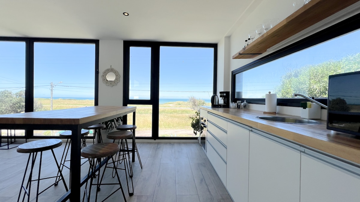 Relájate en este alojamiento único y tranquilo. Disfruta de amaneceres y de la luna todos los días junto al mar. Esta propiedad cuenta con dos dormitorios completos uno con vista al mar, ideal para trabajar en el invierno y disfrutar de una vista increíble A una cuadra o dos se encuentran lugares para tomar café y almuerzo o cena.