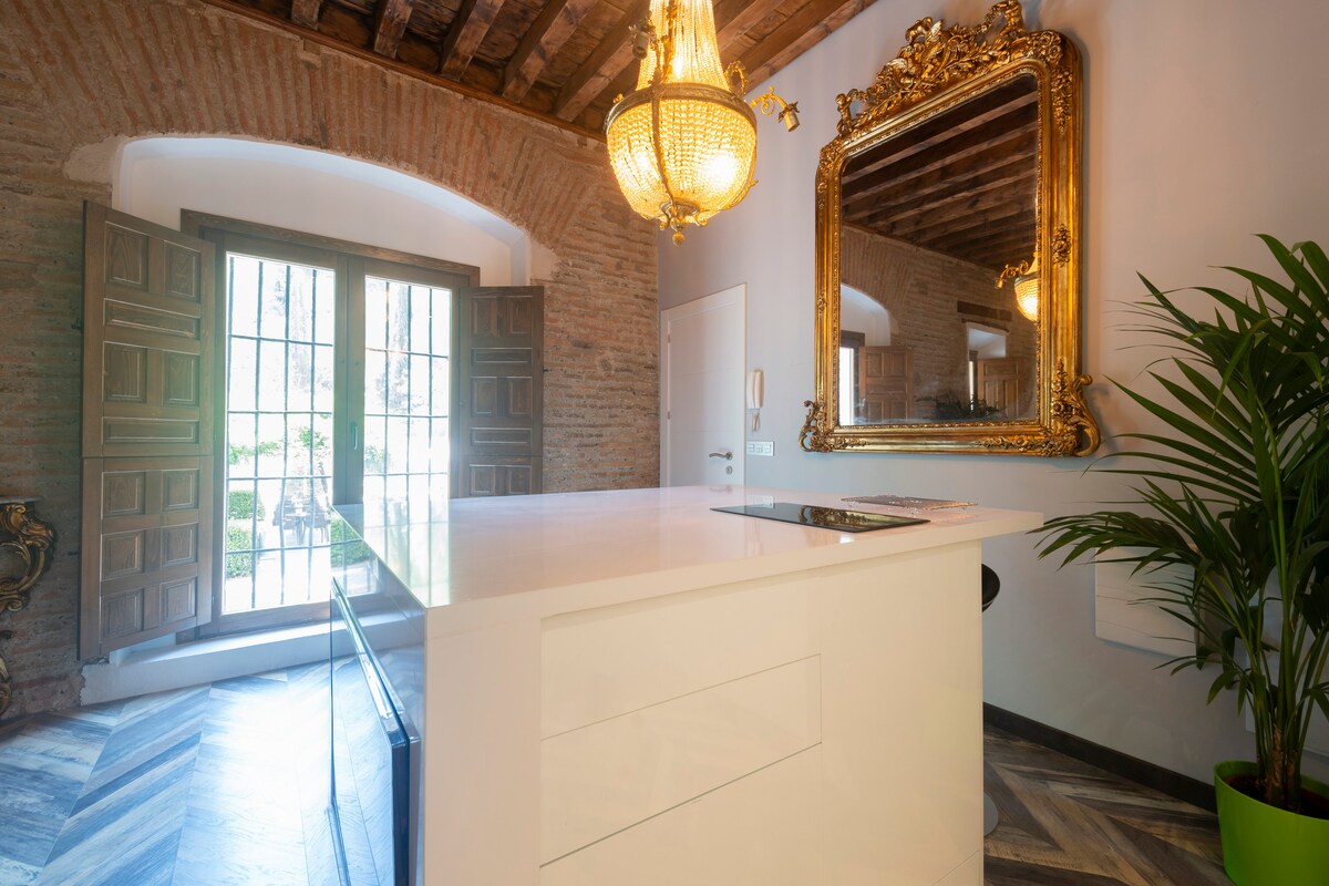 Lujo ubicado en un palacio del siglo XVI en la mejor zona de Granada justo en frente de la Alhambra con las mejores vistas posibles de toda la ciudad y además con muy fácil acceso. En la rehabilitación y decoración se ha respetado y puesto en valor los elementos originales, mezclando mobiliario de valor histórico con decoración actual de diseño. Cabe destacar una iluminación cuidada al detalle, para conseguir un ambiente cálido y casi mágico. disfruta de un palacio frente a la Alhambra.
