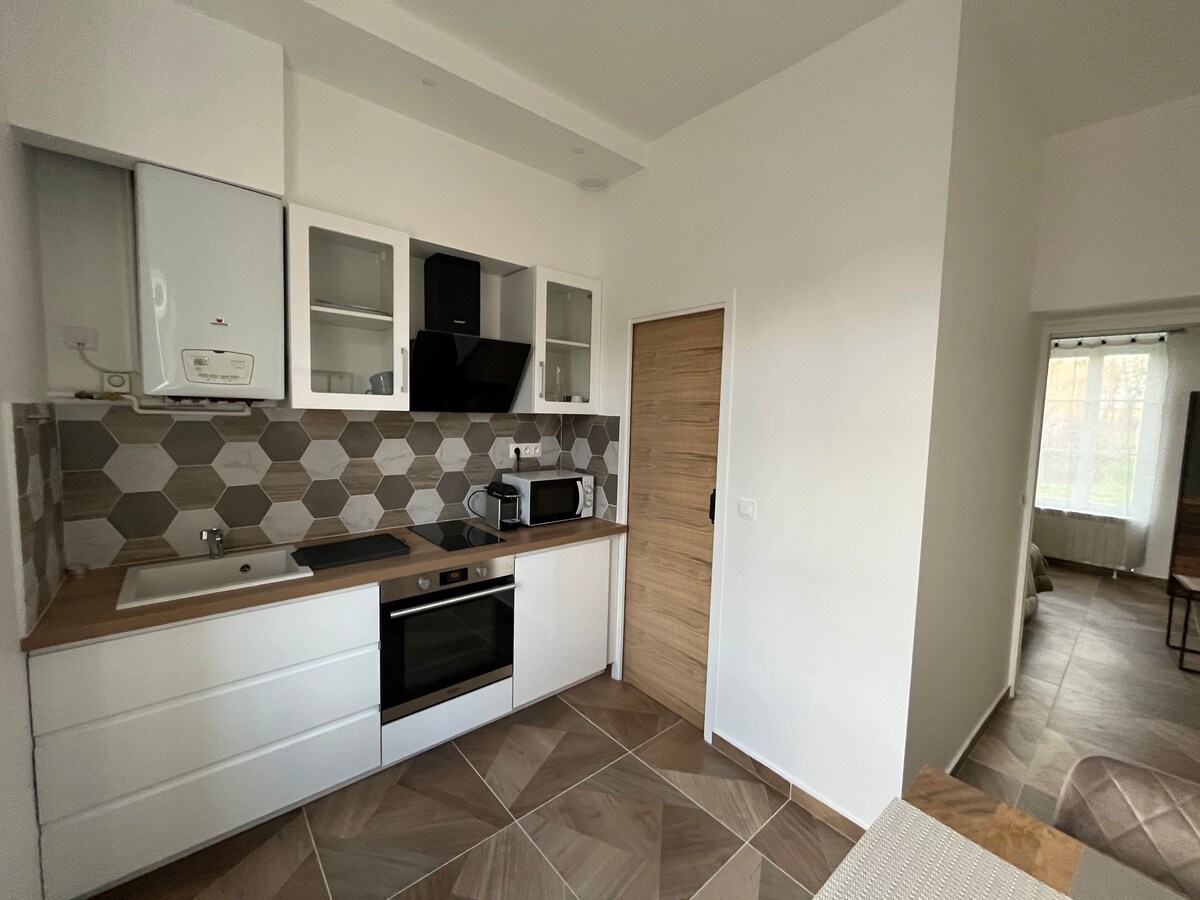 Magnífico estudio de 33 m2 en el centro de la ciudad. 7 días o más -20% 28 días o más -30% - Totalmente renovado, muy luminoso, luces que atraviesan y alojamiento sobre equipado. -Desayuno incluido para su primera noche. - Cama paraguas 👶🏻 -Netflix -Internet de fibra -Situado en una calle tranquila, de un solo sentido, pegada al centro de la ciudad, así como al castillo. -Calle con estacionamiento de pago y estacionamiento del castillo a 100 m de forma gratuita. -A pie: A 2 minutos del castillo y el centro de la ciudad. 10mins de la estación de tren