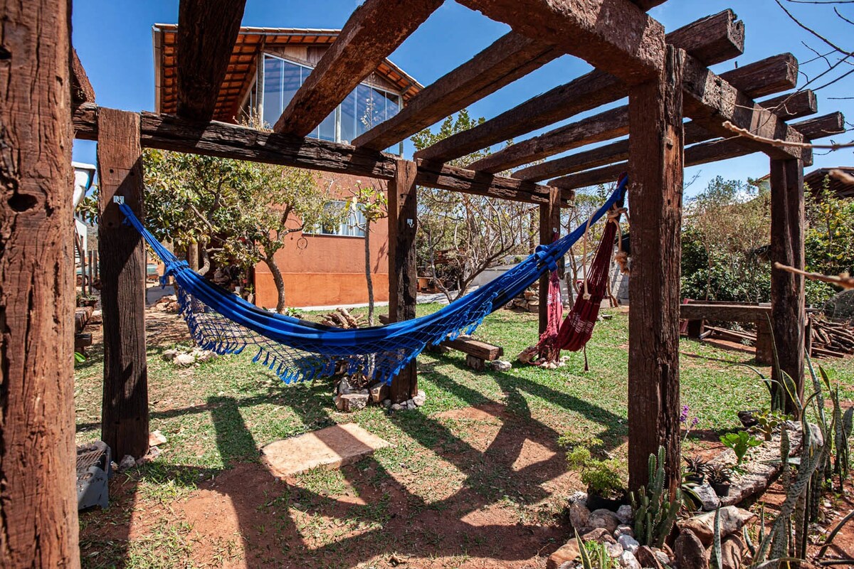 Casa Travessia es un auténtico refugio en la encantadora Lapinha da Serra, a pocos metros de la plaza y las cascadas. Con 6 amplias suites, un chalet independiente, una cocina de Minas Gerais con horno de leña y un encantador jardín, combina la comodidad rústica y el confort moderno. Perfecto para familias, amigos o retiros, es el destino ideal para aquellos que buscan paz, naturaleza y experiencias inolvidables en Serra do Cipó.