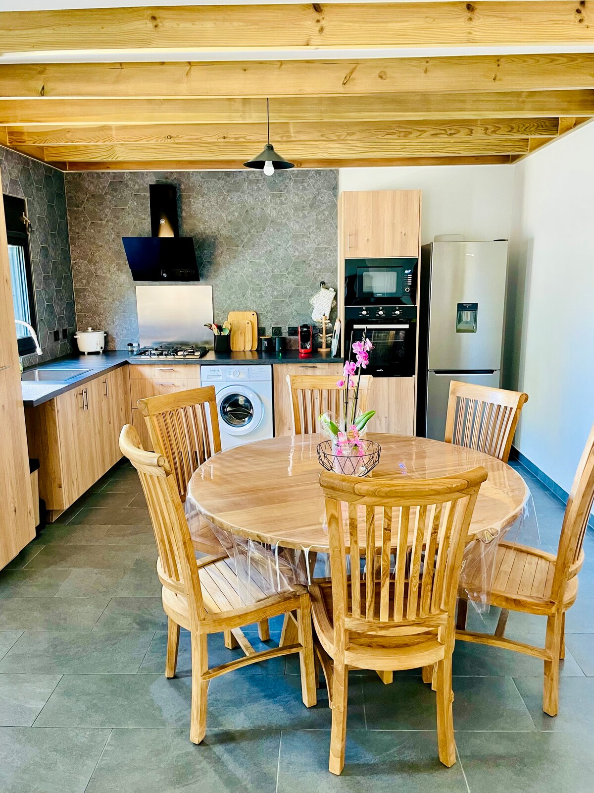 Quiet detached T2 in Saint-Pierre (Ligne des Bambous), nestled in a lush tropical garden. Heated saltwater pool shared only with the owners, Hervé & Sandrine (no other guests). Private parking, Wi-Fi, dining area. Two 160 cm queen-size beds, hotel comfort, spotless and well cared for, very comfortable bedding. Ideal for 2 to 4 guests (family or two couples). Perfect base for beaches, hikes and the Wild South.