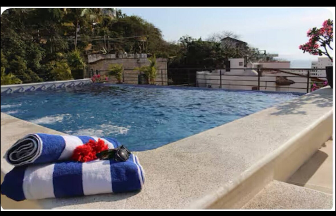 Diseño de espacio abierto, alberca privada, un jacuzzi y el suave diseño mexicano, hacen que esta propiedad sea única, brindándote confort, lujo y calidez. La Suite Presidencial destaca una vista increíble de la bahía de Puerto Vallarta y la playa está tan solo un piso abajo. Ubicada en la famosa colonia de Conchas Chinas, a tan sólo 5 minutos en carro del centro y Olas Altas/Zona Romántica.