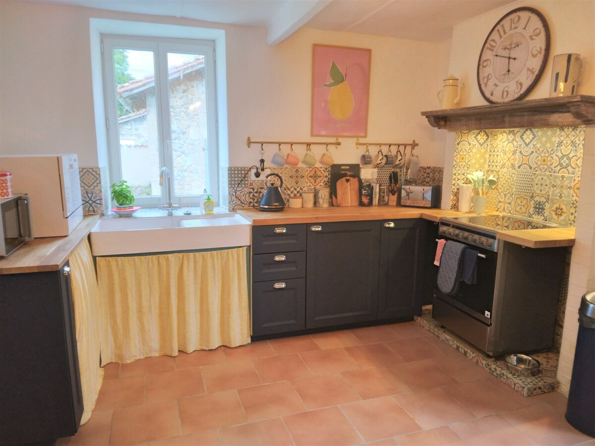 Dans un environnement protégé, vallonné et boisé de Charente Limousine, maison traditionnelle charentaise, entièrement restaurée, située dans un parc d'un hectare. Grande pièce familiale de 50m2. Grande terrasse en pierre ombragée par un pin parasol. Poêle à bois dans salon. Située en bordure de village avec accès direct aux chemins. Cadre idéal pour les sportifs et/ou les familles voulant profiter de la nature et des animaux : Chevaux, brebis, poules sont présents sur la propriété.