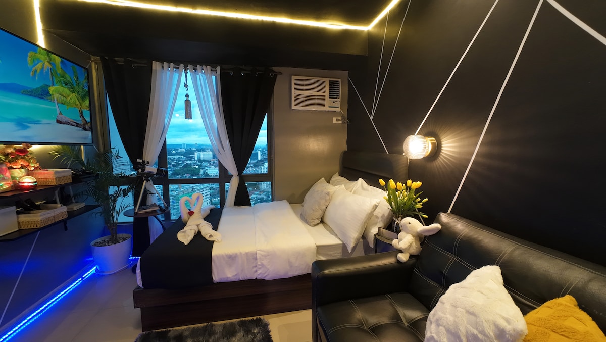 MÁS DE 6 AÑOS COMO SUPERANFITRIÓN DE CONFIANZA EN AIRBNB, CON MÁS DE 300 EVALUACIONES DE 5 ESTRELLAS DE HUÉSPEDES SATISFECHOS. Disfruta de una vida de alta gama en esta moderna unidad de 1 habitación con balcón en Quezon City, que se completa con una cocina para cocinar y cenar. Accede al centro comercial SM North EDSA a través de un puente cubierto seguro, a solo 5 minutos. ! ! ! Antes de reservar dentro de los 2 días previos a la llegada, especialmente los domingos, el acceso puede retrasarse debido al cierre de la oficina. Envíanos un mensaje para confirmar la disponibilidad.