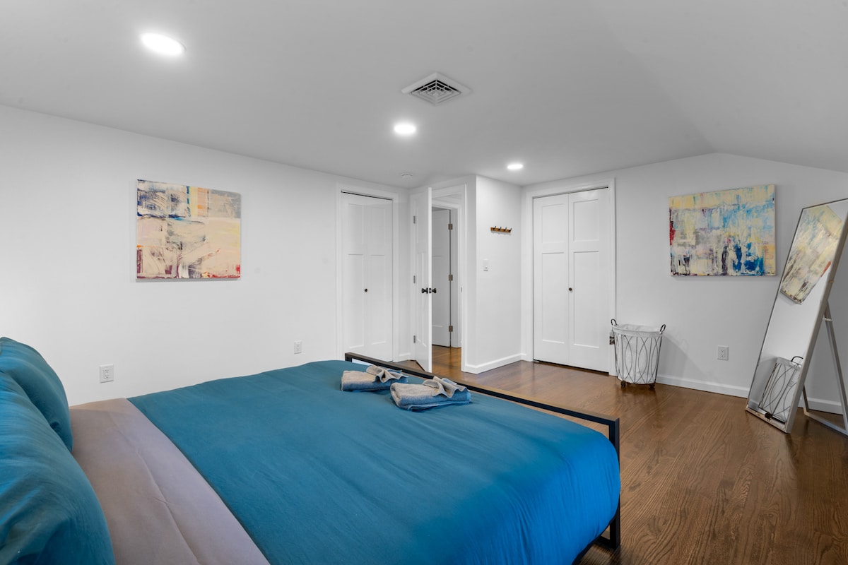 ENTIRE 2nd FL for up to 2️⃣ adult guests ONLY 2️⃣ Rooms➕Skylit Full Bathroom Exclusive Driveway Parking➕locked entrance leading airbnb, separate from full-time renters on 1st FL Heat & Cool: wall-mounted AC➕portable Dyson ➕ Central AC w/2 sensors - host adjustable remotely TV is Screen only, works with Bluetooth & Chromecast, NO Services Kitchenette: heat/store food (NO cooking), allows affordable stay in affluent Fairfield Town Professional Clean Service Host Assistance Virtually