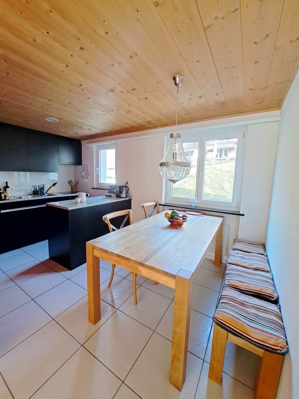 El departamento está en el segundo piso de nuestra casa y ha sido cuidadosamente conservado y restaurado en el estilo de madera. Está amueblado de forma sencilla y elegante, para que te sientas como en casa a la distancia. Es espacioso y ofrece un gran balcón con increíbles vistas sobre el Prättigau con vistas a Klosters en la parte trasera del valle. La casa está construida en la ladera sur y disfruta de muchas horas de sol. ¡La paz y la tranquilidad están garantizadas aquí! Lo más cómodo para 4 personas.