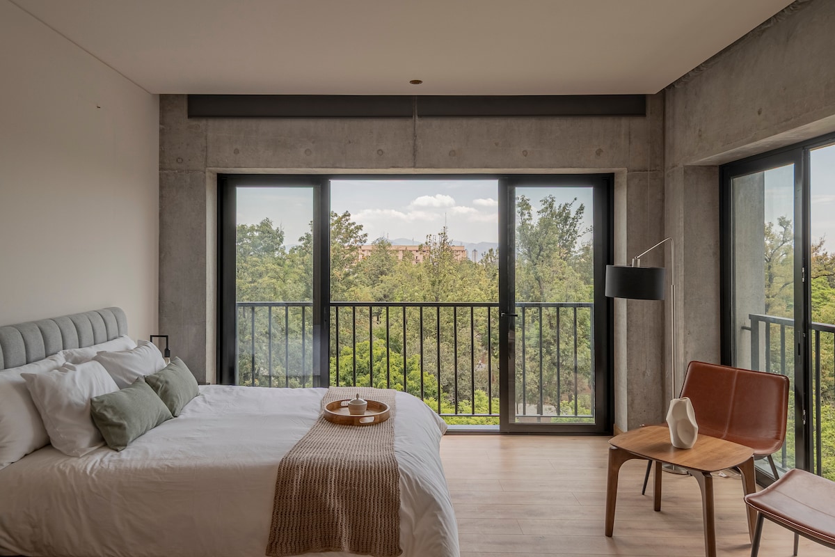 - Edificio moderno y nuevo. - Balcón con vista al Parque México. - Terraza en la azotea y gimnasio completamente nuevo con vistas al Parque México y Reforma. - Vivienda totalmente amueblada diseñada para estancias largas y viajes de negocios. - Lavandería gratuita. - Servicio de limpieza: una vez a la semana para reservas de más de 7 noches. Nido Parque México es un logro arquitectónico increíble con la mejor ubicación absoluta en la totalidad de la Ciudad de México, en la esquina con vistas al Parque México, en el corazón de la Condesa.