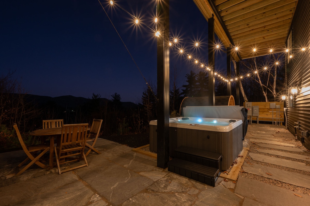 ¡Bienvenido a «The Alexander» en Casa de Moraga! Esta pequeña casa con tejado a dos aguas está situada a orillas del río Baker, con impresionantes vistas al río y a las montañas Blancas. Cocina completa, baño con ducha y sala de estar/comedor. Despiértate en el dormitorio loft y contempla las montañas y el río desde la cama. Lee en el sofá y disfruta de la chimenea de combustible de gel, date un baño o pesca en el río, ¡relájate en tu jacuzzi privado en la terraza con vistas al río! A 10 minutos de Tenney MTN. ¡A 35 minutos de Ice Castles, Franconia, Loon y Waterville!