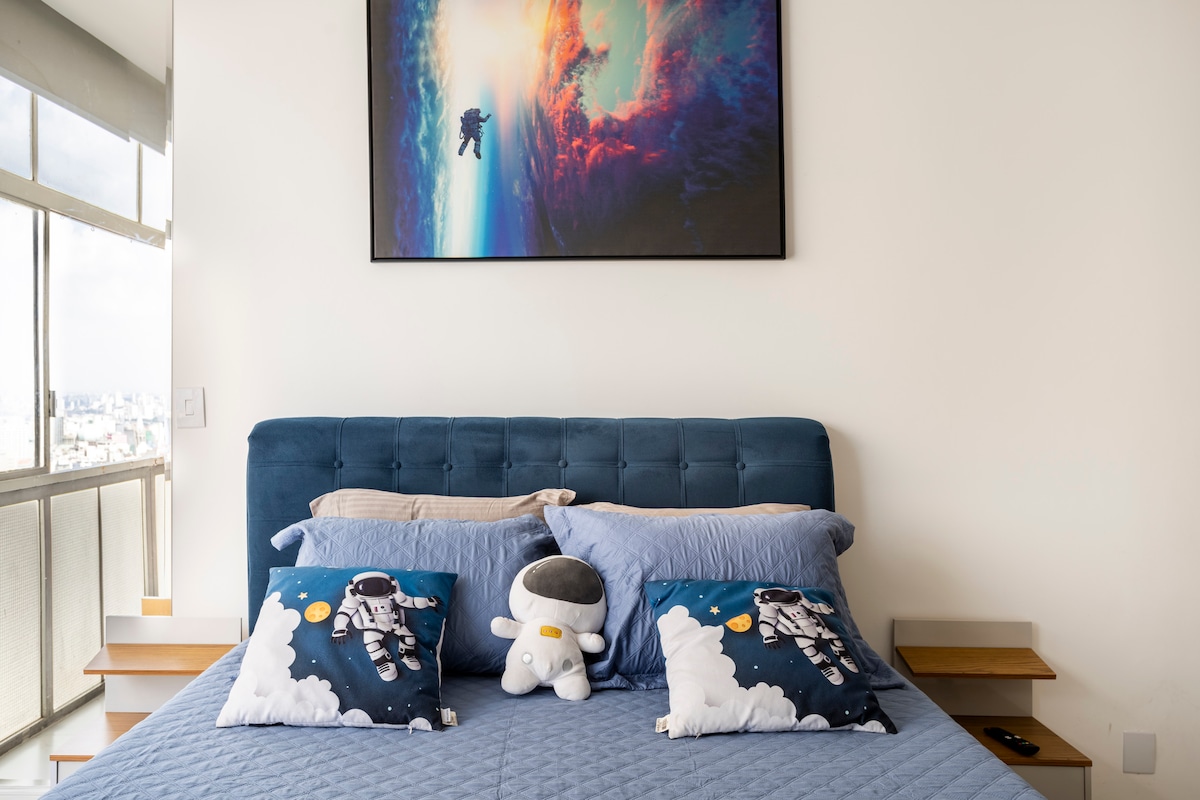 ¡Una gran experiencia de viaje para alojarse en un edificio emblemático en el centro de São Paulo! Es un loft en el piso 25, estudio de 35 m². Aquí encontrarás: - Muebles nuevos - Sábanas y toallas. - Cocina totalmente equipada. - Wifi de alta velocidad (250 Mb) - TV inteligente. - Lavadora. Excelente ubicación: junto a la estación de metro de la República y la parada de autobús de Ipiranga. Además, hay una panadería, bares y restaurantes en la planta baja de Copan. Por razones de seguridad, el edificio Copan pide una foto del pasaporte del huésped. ¡Gracias!