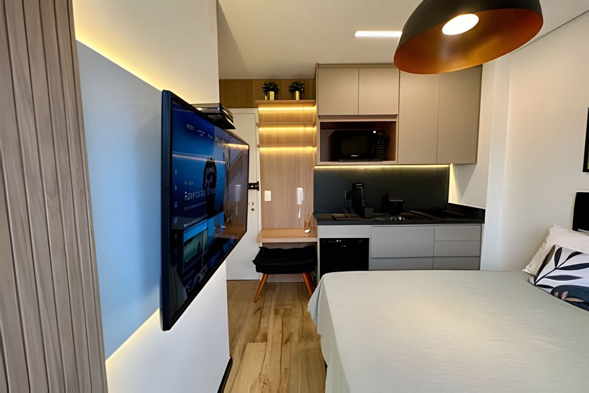 Encantador y acogedor estudio en condominio con infraestructura completa para el ocio, el descanso y el trabajo. Está diseñado para ofrecer comodidad a los huéspedes durante su estadía. Excelente ubicación, junto al centro comercial Frei Caneca, a 6 minutos a pie del metro Higienópolis-Mackenzie, a 8 minutos de la avenida Paulista, cerca de bares, restaurantes, mercados y hospitales.