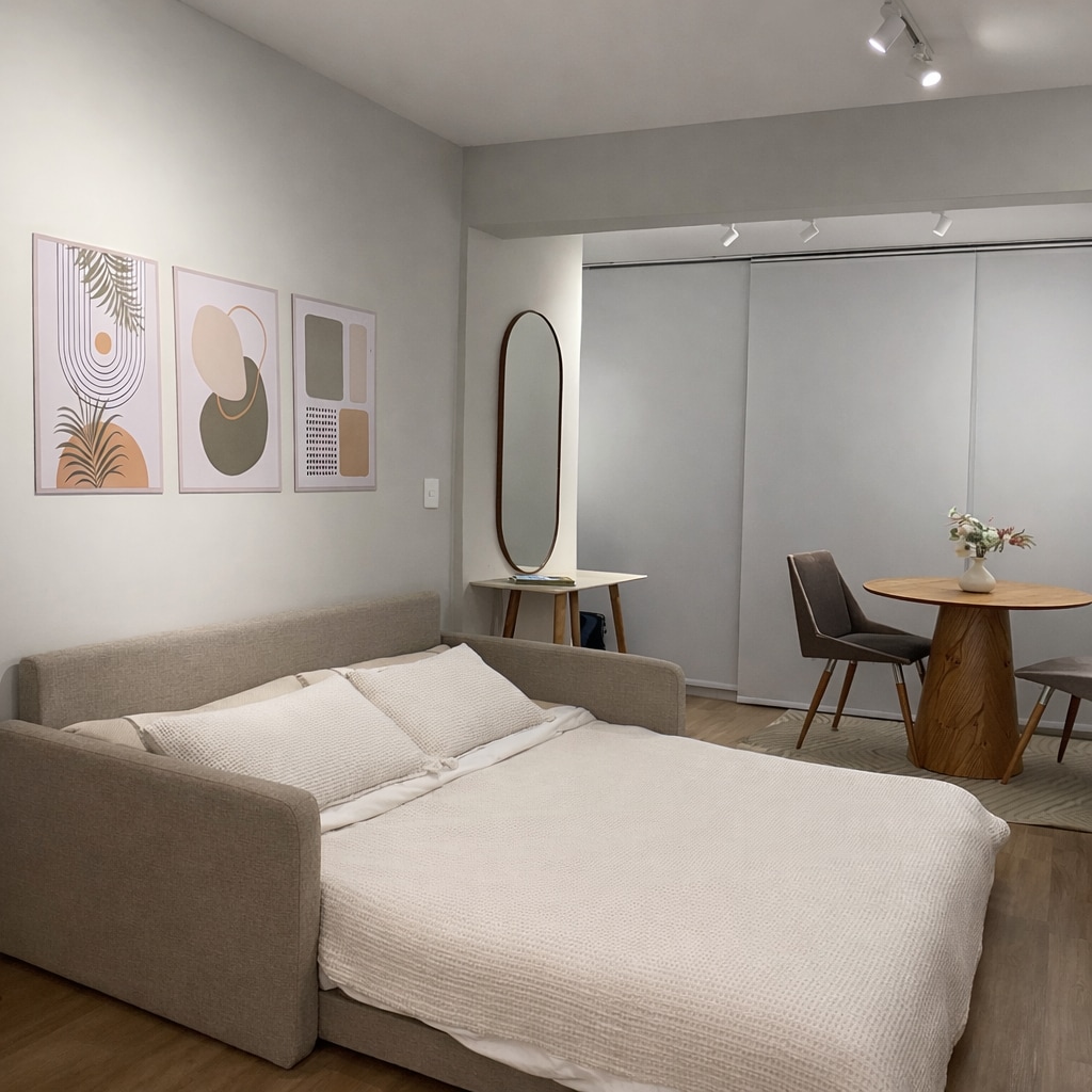 Seu apê ultra descolado no 18º andar, de frente para a Praça da República! Vista incrível de SP para inspirar seu dia. Curta a varanda, ar-condicionado e cozinha básica. No prédio, lazer completo: piscina no rooftop (25º andar!), academia, lavanderia, minimercado, salão de jogos e estacionamento. Perto de tudo, viva a cidade com muito estilo e conforto. Perfeito para quem busca uma experiência autêntica e vibrante.