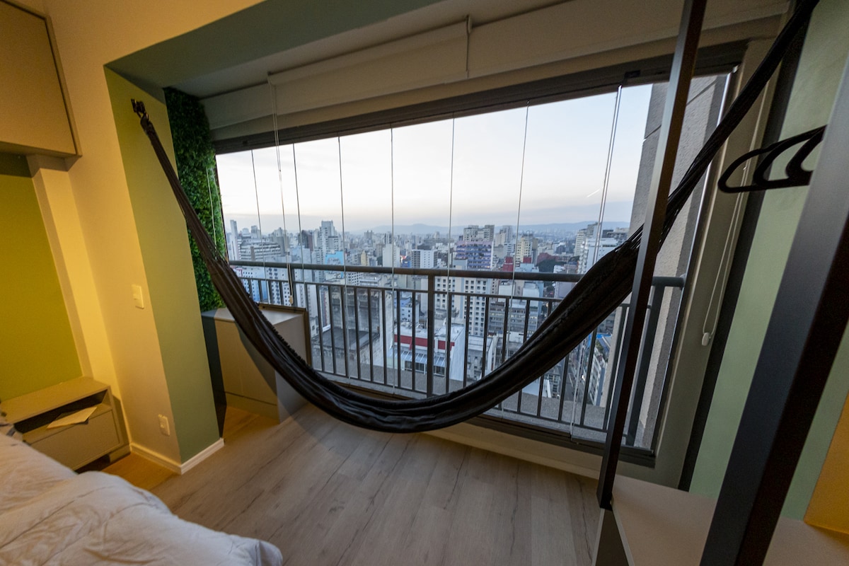 Acogedor mini apartamento con vistas a la ciudad, situado en el piso 23, 21 m², en el lugar más fresco de la ciudad, junto a la estación de metro COPAN y República. Estacionamientos las 24 horas cerca. El check-in es a las 2:00 p. m. y el check-out a las 12:00 p. m., flexible si el apartamento está libre o para estadías de más de 6 días. Los domingos, salida después de la hora establecida a las 8:00 p. m. Cama tamaño queen, terraza, aire acondicionado y ventilador de techo. Banco de trabajo. TV inteligente. Lavandería en el edificio. Armario y cajón para la ropa. Acepto a tu mascota :)