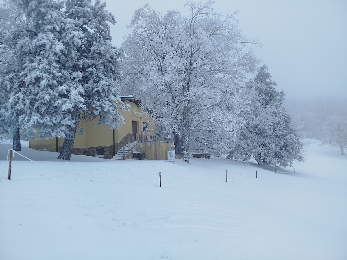 🌲 El Chalet Monte Alago es la única casa en la montaña, un refugio aislado inmerso en el parque, directamente en los prados a una altitud de unos 1000 metros, rodeado de bosques y naturaleza virgen. En los meses de invierno (enero, febrero y marzo) la nieve es frecuente: unas verdaderas vacaciones en la nieve hechas de silencio, aire limpio y naturaleza. Aquí no hay vecinos ni ruido: solo privacidad total y contacto directo con la montaña. Ideal para parejas, familias y grupos pequeños de amigos.