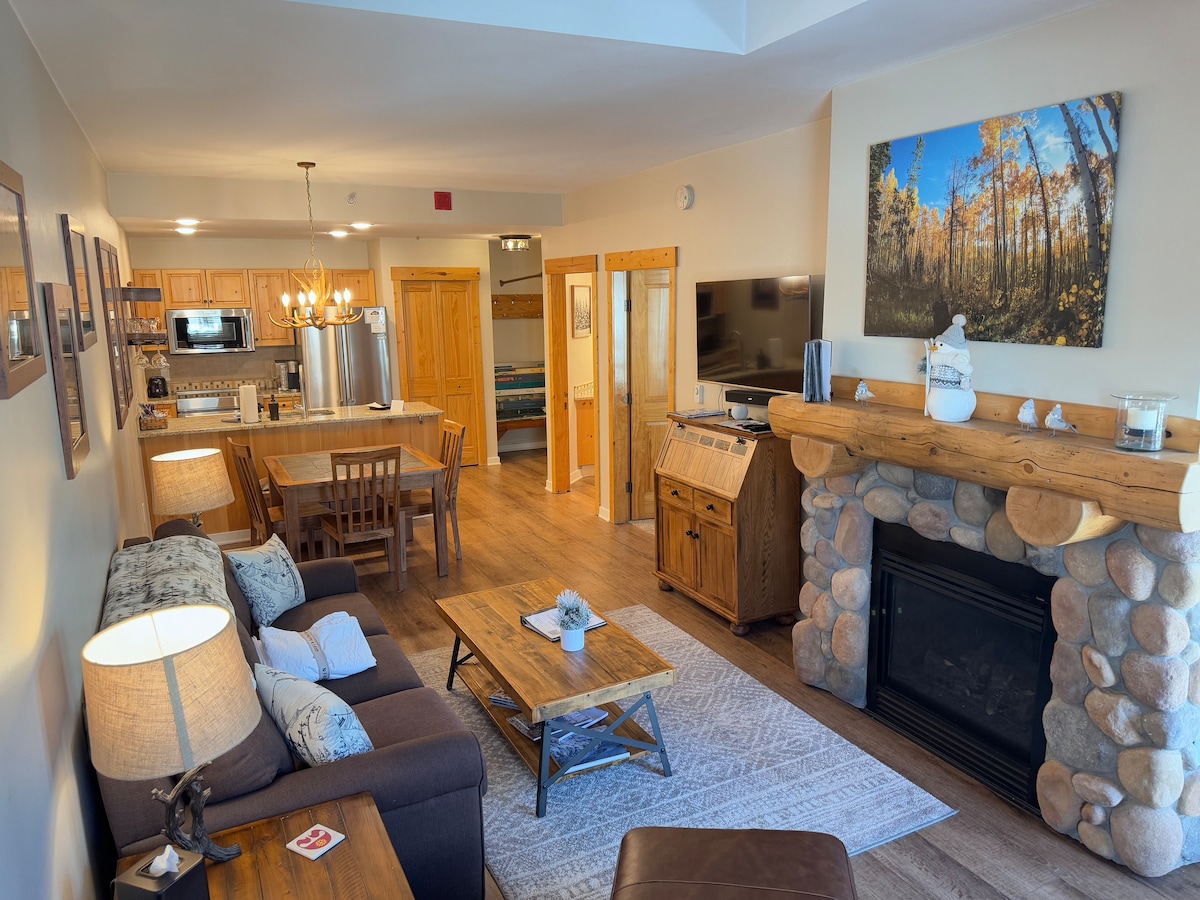 Ven, disfruta de una escapada en nuestro hermoso condominio de 1 dormitorio en el corazón de Copper Mountain 's Center Village. INCREÍBLES vistas a las montañas y al estanque donde puedes disfrutar del esquí, el golf, los restaurantes, las cafeterías, las tiendas y mucho más. Se proporciona una cocina y sábanas totalmente equipadas con tu estadía. La acogedora chimenea de piedra es un punto focal de la sala de estar que incluye un sofá cama tamaño queen. El wifi tiene velocidades de descarga de 42,5 MBPS Licencia DE alquileres de corta duración #STR21-02196 Ocupación máxima: 4 plazas de estacionamiento: 1
