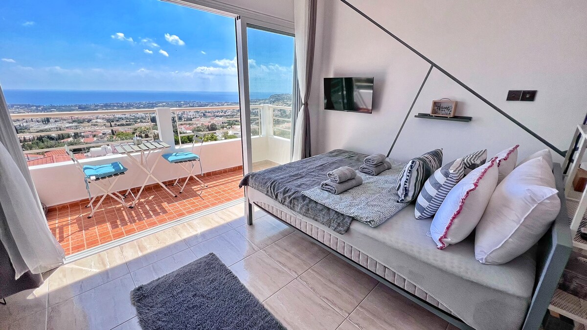 Estudio limpio en el hermoso pueblo de Peyia con impresionantes vistas al mar. Smart TV con NETFLIX incluido. Cocina totalmente equipada. Aire acondicionado desinfectado regularmente. El supermercado, los bares, los restaurantes, el banco, la comisaría y la farmacia más cercanos están a solo 5 minutos a pie del estudio. Coral Bay está a 7 minutos en coche, o puedes coger el autobús. La parada de autobús está bastante cerca, a 100 metros del apartamento. Sin ascensor. Estacionamiento gratuito. El aeropuerto internacional de Pafos está a solo 30 km.