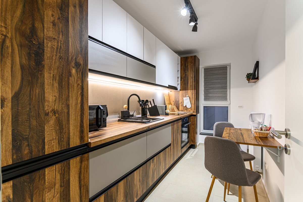 Bienvenido al oasis urbano recién renovado en el corazón del vibrante centro de la ciudad de Brasov. Disfruta de un retiro tranquilo con una decoración inspirada en Bali y comodidades modernas. A solo 350 metros de monumentos históricos, cafeterías de moda y boutiques artesanales, como la plaza del Consejo, la calle de la Cuerda y el Museo de Arte.