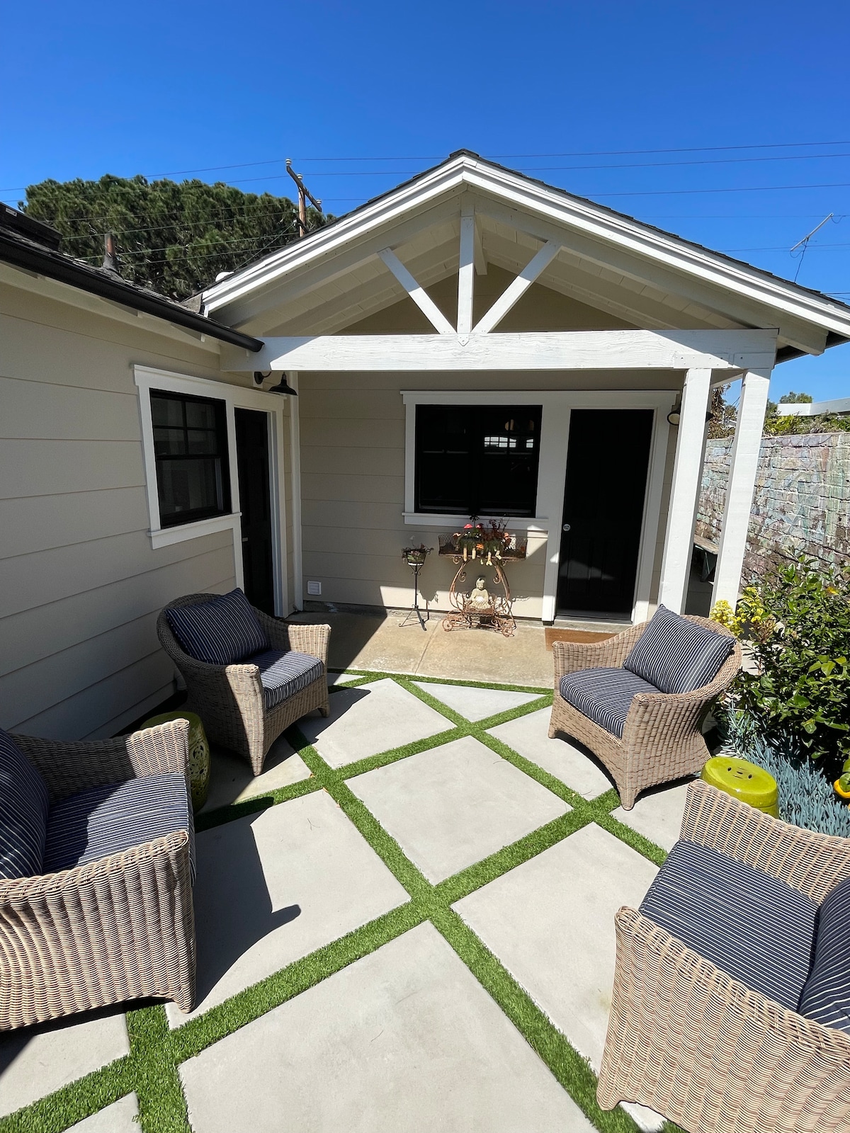 Junto a un pequeño parque en el borde del océano Pacífico, este Airbnb de La Jolla con patio de 595 pies cuadrados ofrece aire salado del océano a unos 100 pies de distancia con fascinantes piscinas de marea. Demasiado peligroso para los niños aquí, lo siento, pero hay espacio para tablas de surf y bicicletas, y tu spa te espera. No hay acceso a la playa. Debe bajar por el sendero del parque hasta la orilla pedregosa, pero hay una playa de arena a un cuarto de milla de distancia. Habitación con baño en suite/cama tamaño king, tarifa por perro de $55 por noche; 20 % de descuento ese día si se escuchan posibles ruidos de construcción