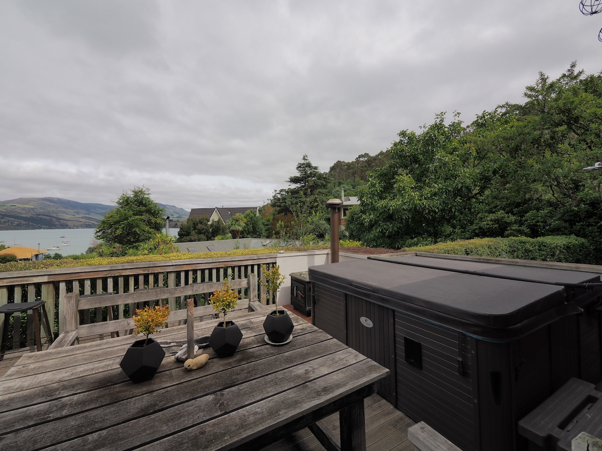 Beautiful charming cottage with fantastic view. The cottage has a queen bed, a sitting room, shower, bath and toilet with own deck. Not self-contained but has gas burners, bbq set outside on the deck and microwave, mini fridge, kettle and toaster inside. Tea/Plunger coffee are provided. There is a walking track below the cottage and also more walks around here. We are located in Diamond Harbour, 20min walk to jetty that you can catch a ferry to Lyttelton, only 10min ride, beautiful journey