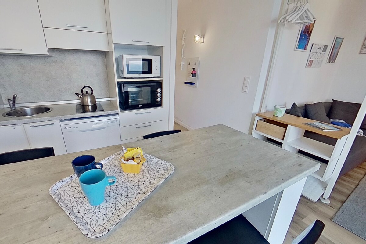 Calificación promedio: 4.89 de 5; 233 evaluacionesSopramare T2 (25 m²) terraza superior con vistas al mar y aire acondicionado