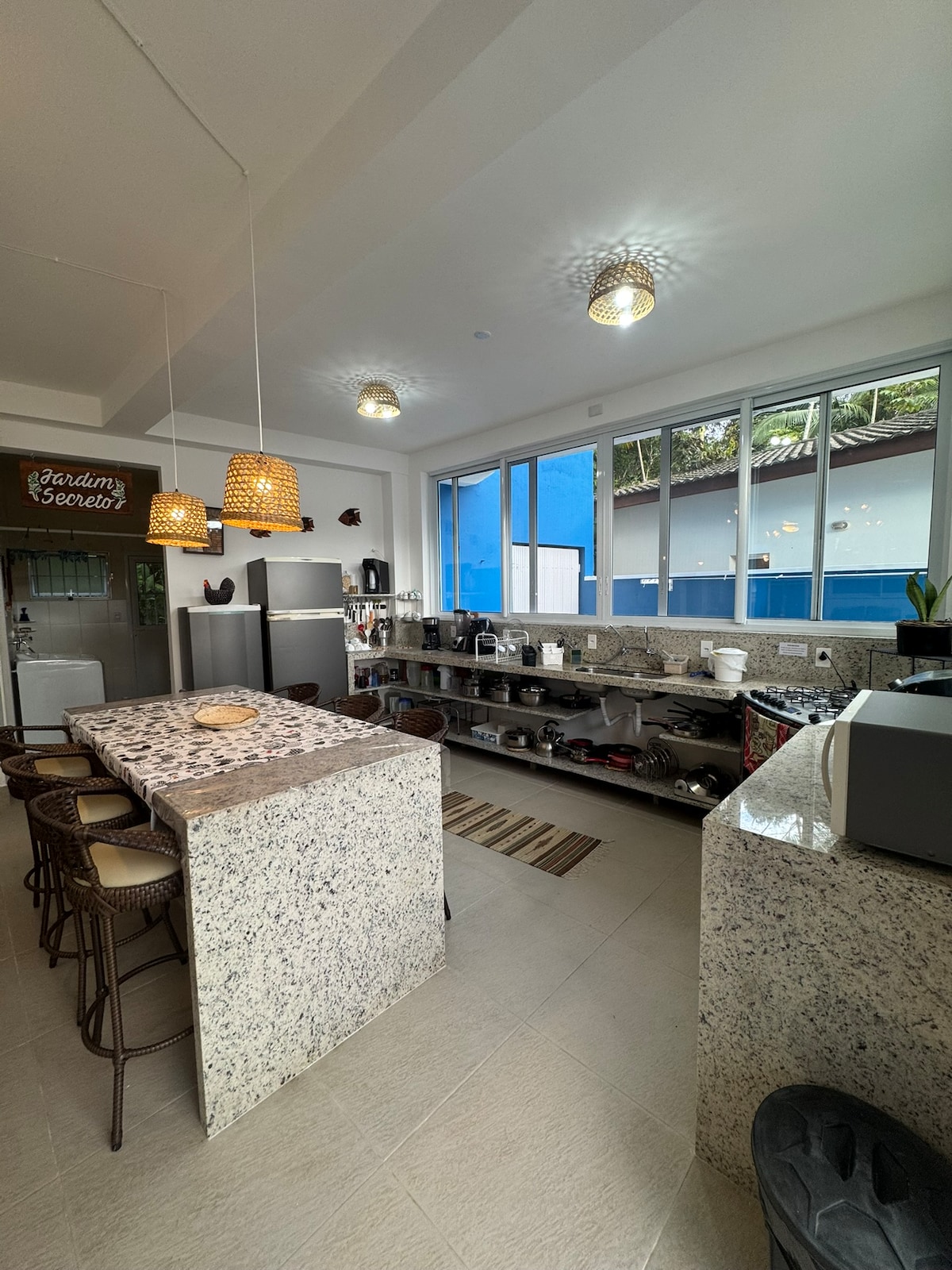 A 7 minutos a pie de la playa de Camburizinho/Camburi Nuestra casa es muy exclusiva, prácticamente toda la casa tiene vistas al mar (menos el baño), dormitorio con cama tamaño queen, ventilador de techo y puerta al balcón con vistas al mar. Mezzanino con colchón doble y pared de vidrio con ventana y vistas al mar. ¡Casa muy bien ventilada, tranquila y privada! ¡Cocina con utensilios, sala de estar acogedora con sofá cama y ventanales grandes con un vistazo!
