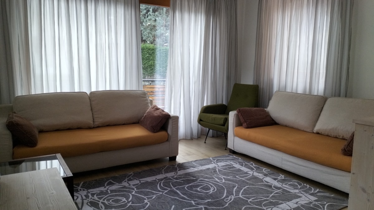 Se alquila amplio apartamento que consta de cocina (mesa con capacidad para 10 personas), sala de estar con 2 sofás cama, 2 dormitorios dobles y 1 habitación con 4 camas. 3 amplias terrazas. 2 baños (1 con ducha y 1 con lavadora). Amplio garaje, plaza de aparcamiento exterior, jardín privado. A 300 metros del centro del pueblo. Se encuentra cerca del centro de «rafting», equitación, alquiler de bicicletas, carril bici y sala de juegos-bolos. A solo 2 km del teleférico de Daolasa (amplio aparcamiento), conectado con Madonna di Campiglio.