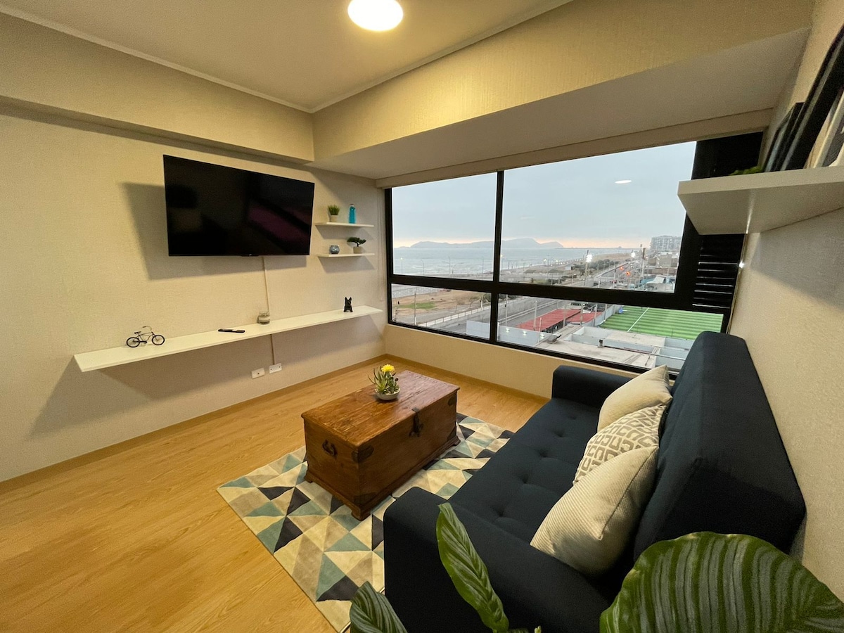 El sonido del mar sera tu mejor compañía, escapada romántica frente al mar, Déjate arrullar por las olas y disfruta de atardeceres mágicos en este refugio DELUXE. Diseñado para parejas, cama Queen, detalles exclusivos y full confort. Ubicación privilegiada en Malecón Costanera, punto clave para recorrer los distritos de la Costa Verde Seguridad y calidez garantizadas. Reserva, conectate con el mar y recarga tu energia Por favor, lee las reglas completas para una estadía perfecta.