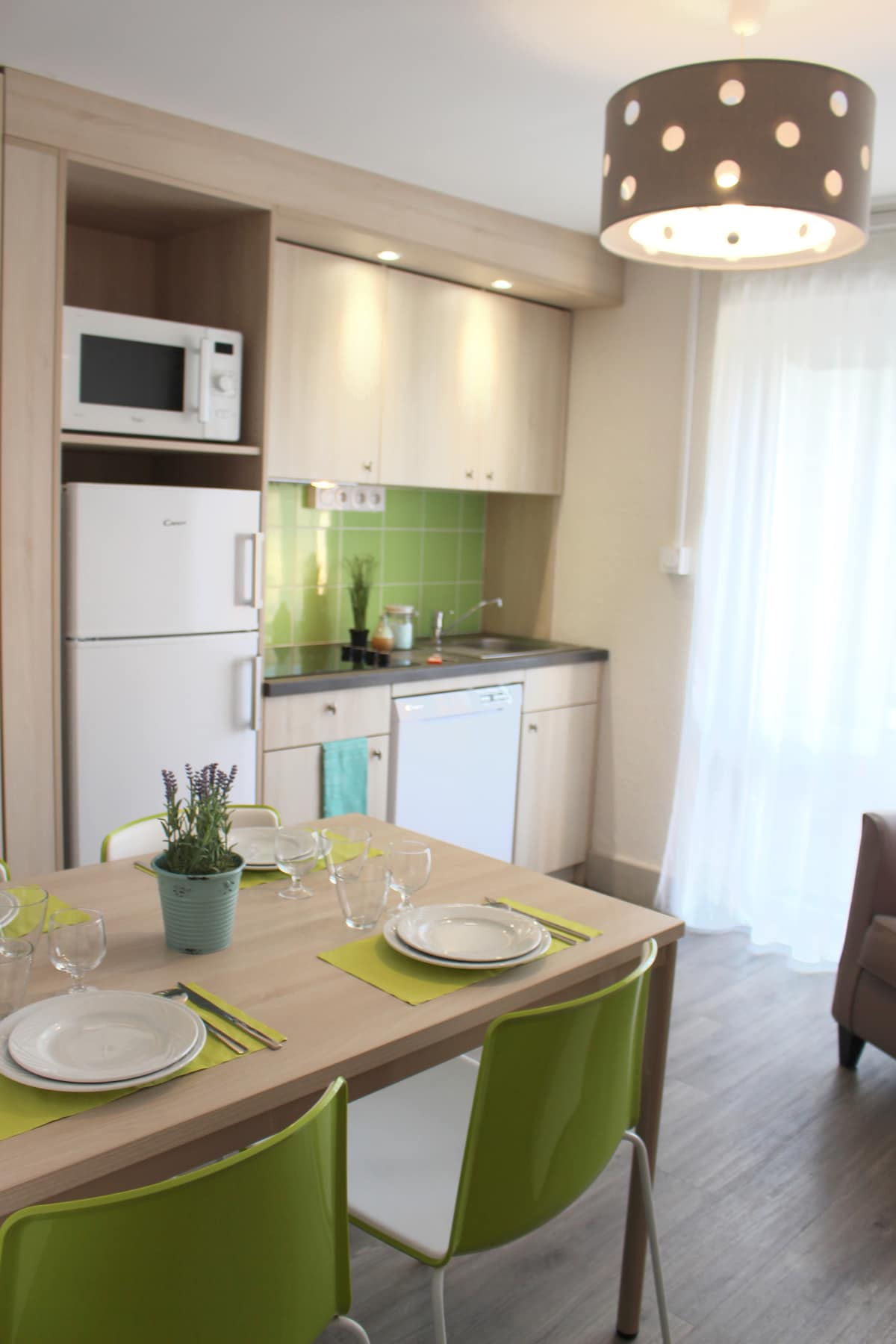 🏖 Estudio a 300 m de la playa Residencia tranquila 📍 Situado cerca del famoso mercado, disfrute de un estudio de 26 m² con balcón en una residencia tranquila. Ideal para 2 personas (equipado para 4) ⚠️ Máximo 2 adultos + 2 niños 🚭 Estudio para no fumadores 🧺 No se proporciona ropa de cama 🧹 Limpieza de final de estancia incluida 🚗 Estacionamiento Garaje cerrado (2,60 m x 5 m) Estacionamiento en el edificio (plazas no numeradas) 🚲 Bicicletas disponibles 2 bicicletas de segunda mano para adultos (disponibles contra buen cuidado)