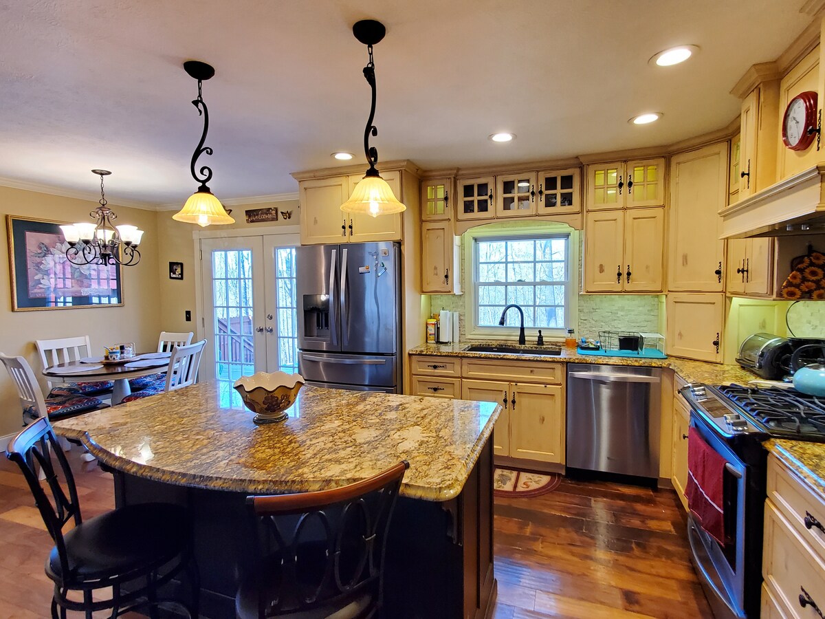 Construida en 1941 por la familia Bradley, esta casa de 3 dormitorios y 2 baños es perfecta para una escapada de fin de semana. Estamos orgullosos de ser la única casa en el distrito de entretenimiento y a la vista de todos los emocionantes negocios de al lado. Ven a jugar al cornhole en el patio trasero, prueba tu habilidad en nuestro tejo de tamaño reglamentario Olhausen 22', haz turismo por el distrito Baker en nuestra selección de bicicletas 🚴 y disfruta de un poco de miel 🐝 de nuestra granja White River. Nos encantaría ser tu anfitrión mientras disfrutas de la zona de MH.