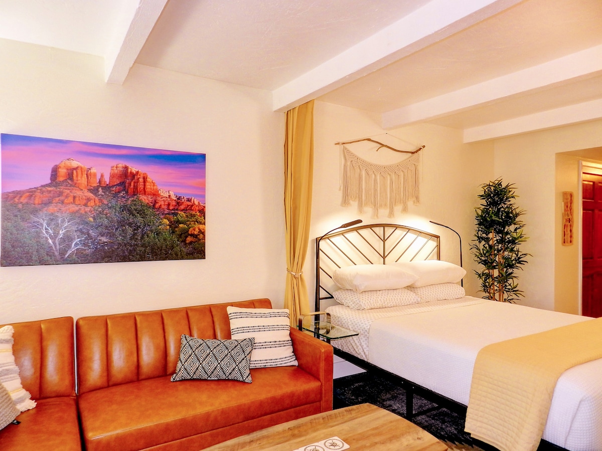 ¡Toda la NUEVA casita de la unidad final en WEST SEDONA! ¡El Zen Den se encuentra justo en el corazón de este increíble parque infantil llamado Sedona! ¡Camina a rutas de senderismo, restaurantes y tiendas de comestibles! Disfruta de los nuevos muebles de lujo y las obras de arte locales. Transmite tu película favorita en el Smart TV. Cocina en la cocina totalmente abastecida. Se proporcionan todos los elementos esenciales, así que relájate y disfruta de una experiencia increíble e inolvidable en Sedona. No todos los que deambulan están perdidos .....J.R.R. Tolkien