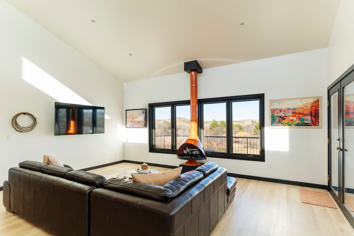La primavera en Oak Creek es una magia tranquila. Los álamos americanos se cubren de un verde fresco, las flores silvestres aparecen en la pradera y el arroyo fluye con fuerza gracias a las lluvias de la estación. Lo oyes desde la terraza antes de verlo. Tu'nlii House, cuyo nombre proviene de la palabra apache que significa «río», se encuentra en un terreno de 2,6 acres donde ese sonido se convierte en el telón de fondo de todo. Recorre Cathedral Rock con un clima perfecto de 23 °C (73 °F). Degustación de vinos en Page Springs (10 min). «¡RESERVA ESTE LUGAR!» — Allie