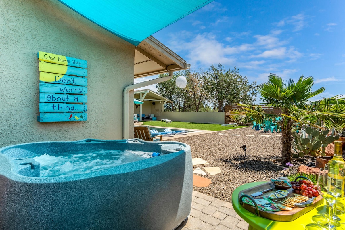 ¡Paraíso en el desierto! Disfruta de impresionantes vistas en un estudio privado completamente separado con una PISCINA PRIVADA de 30' y una BAÑERA DE HIDROMASAJE privada. Tranquilas 2,5 acres en las estribaciones de la montaña Mingus. ¡La ubicación perfecta para todas tus aventuras en AZ! Explora las rocas rojas de Sedona, las numerosas salas de degustación de vinos y fabulosos restaurantes de Old Town Cottonwood, la ciudad de Jerome con vistas INCREÍBLES, kayak, disfruta de TONELADAS de senderismo y mucho más. ¡Una escapada perfecta, privada, romántica y tranquila!