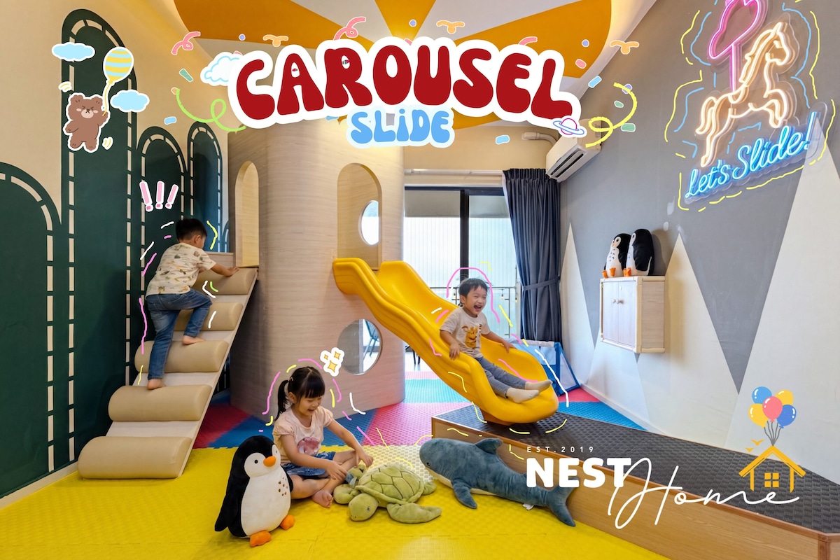 El parque infantil con carrusel y tobogán | ¡Capacidad para 8 personas!