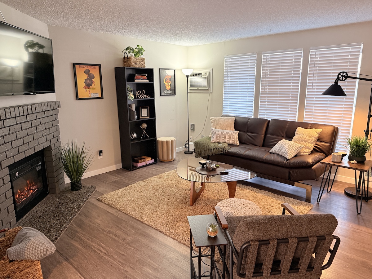 Disfruta de una entrada privada a este acogedor estudio en el sótano cerca de senderos para caminar y el río Little Spokane, a solo 5 minutos de tiendas y restaurantes. En el interior, encontrarás suelos de láminas de vinilo de lujo, una elegante pared de palés y pintura fresca. Descansa tranquilamente en la MEJOR cama tamaño king (¡a los huéspedes les encanta!) o en el sofá cama tamaño queen de IKEA, perfecto para niños o un huésped adicional. Los servicios incluyen wifi, Roku TV y un reproductor de DVD con películas. ¿Viajas con una caravana o remolque? ¡Cuenta con estacionamiento ampliado!