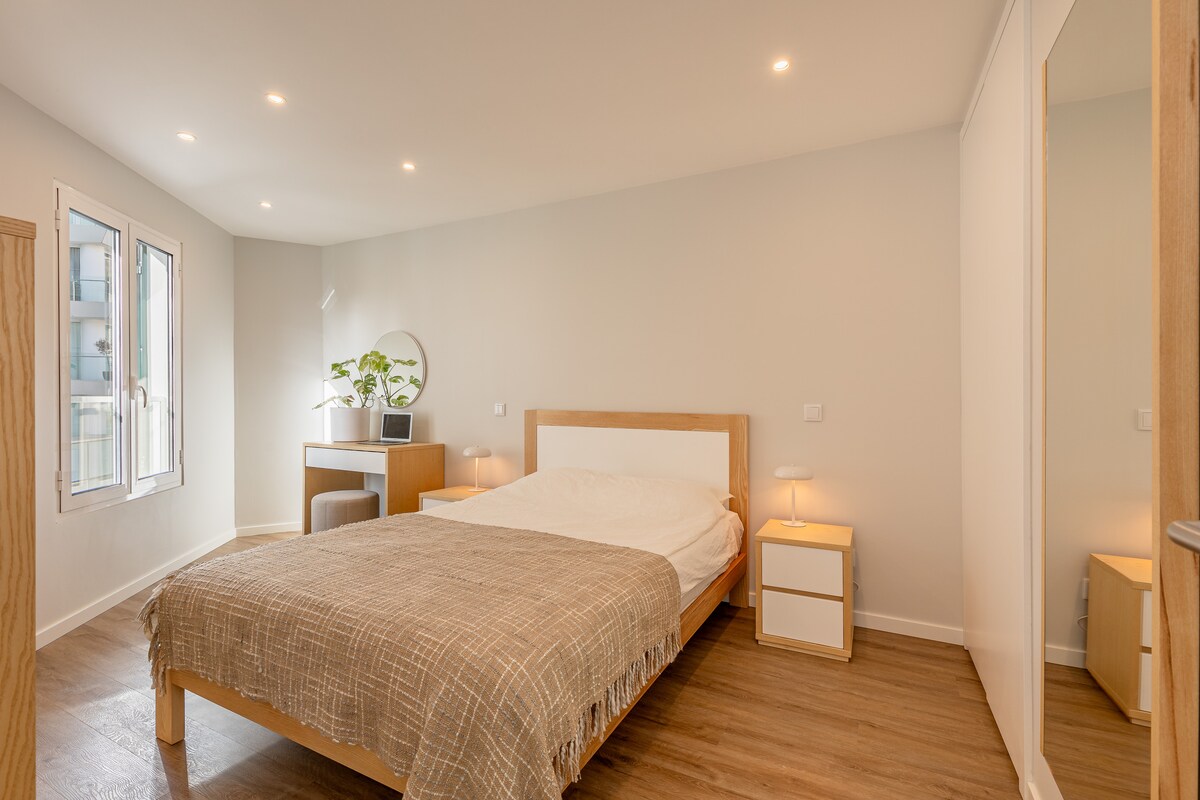 Nuestro lugar está a 12 minutos a pie del Palacio Reids, a 25 minutos a pie del Parque Santa Catarina, a 30 minutos a pie de la histórica catedral para aquellos que disfrutan de un ritmo relajante, o a 5 minutos en auto. Este luminoso apartamento en la planta baja, con un enorme patio privado total con vista parcial al mar, ofrece una suite con cama tamaño queen, un dormitorio con dos camas individuales y una oficina. Dos baños: uno privado (con ducha) y otro con bañera. El departamento puede alojar hasta cuatro huéspedes.