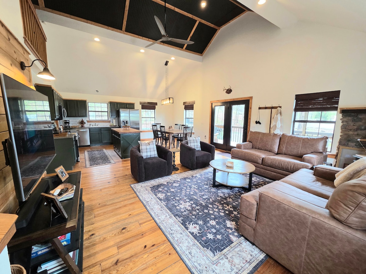 Relájate con toda la familia o un grupo de amigos en este refugio aislado en una finca de 20 acres en una sección remota de las montañas Ozark. Mucho que hacer... ¡una sala de juegos cargada, piscina, jacuzzi, pesca, golf frisbee y mucho más! Impresionantes vistas a las montañas que incluyen partes de los propietarios de un refugio familiar de 440 acres. ¡Asegúrate de ver la descripción de la propiedad! 😊 Peligros/riesgos asociados con la vida silvestre y las aguas abiertas. Consulta “Otros detalles”. Los huéspedes asumen la plena responsabilidad de su propia seguridad.