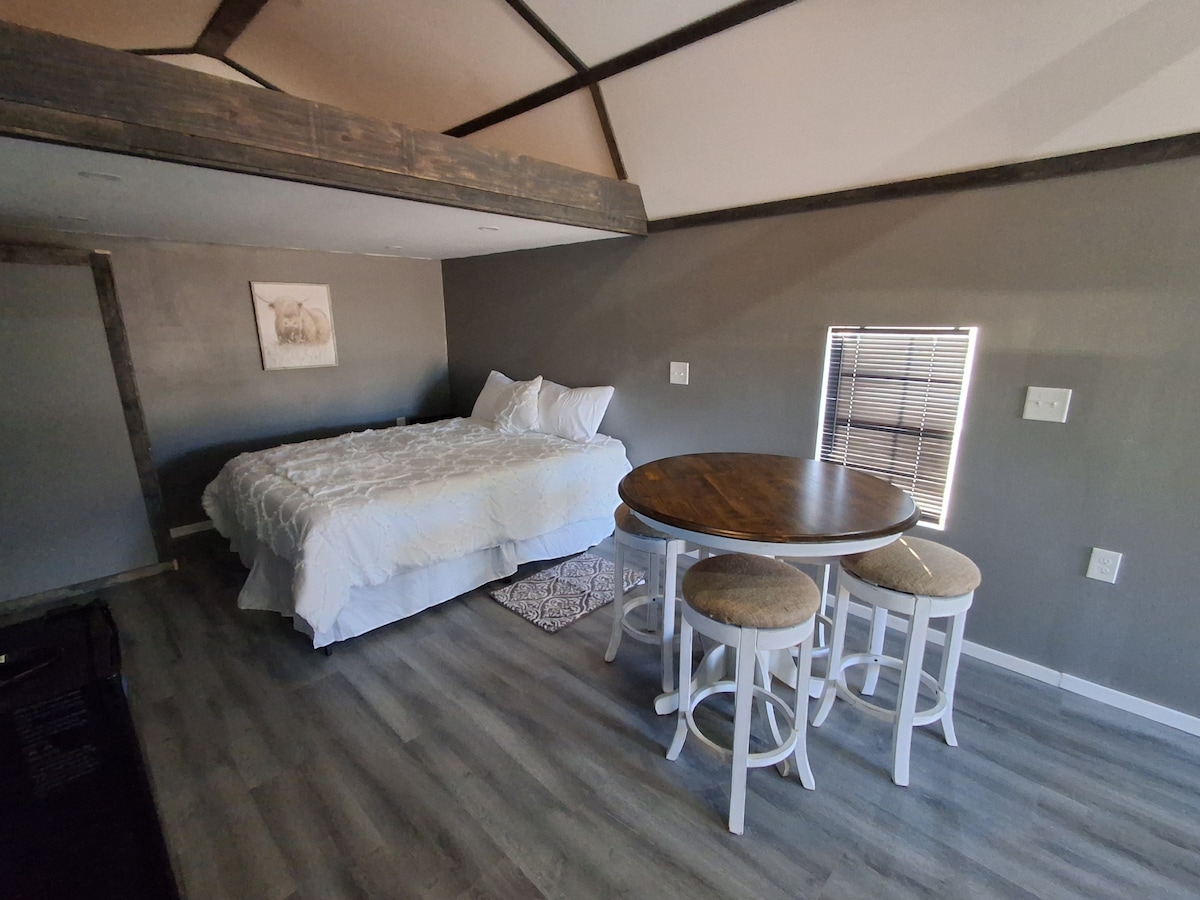 Our large cabin has a queen sized bed, mini fridge, microwave, toaster oven and coffee maker. A nice size bathroom with shower. It is conveniently located next to our wash/bath house which has a washer and dryer. This cabin is located on our 6 lot RV park. We also have a dog park and playground.