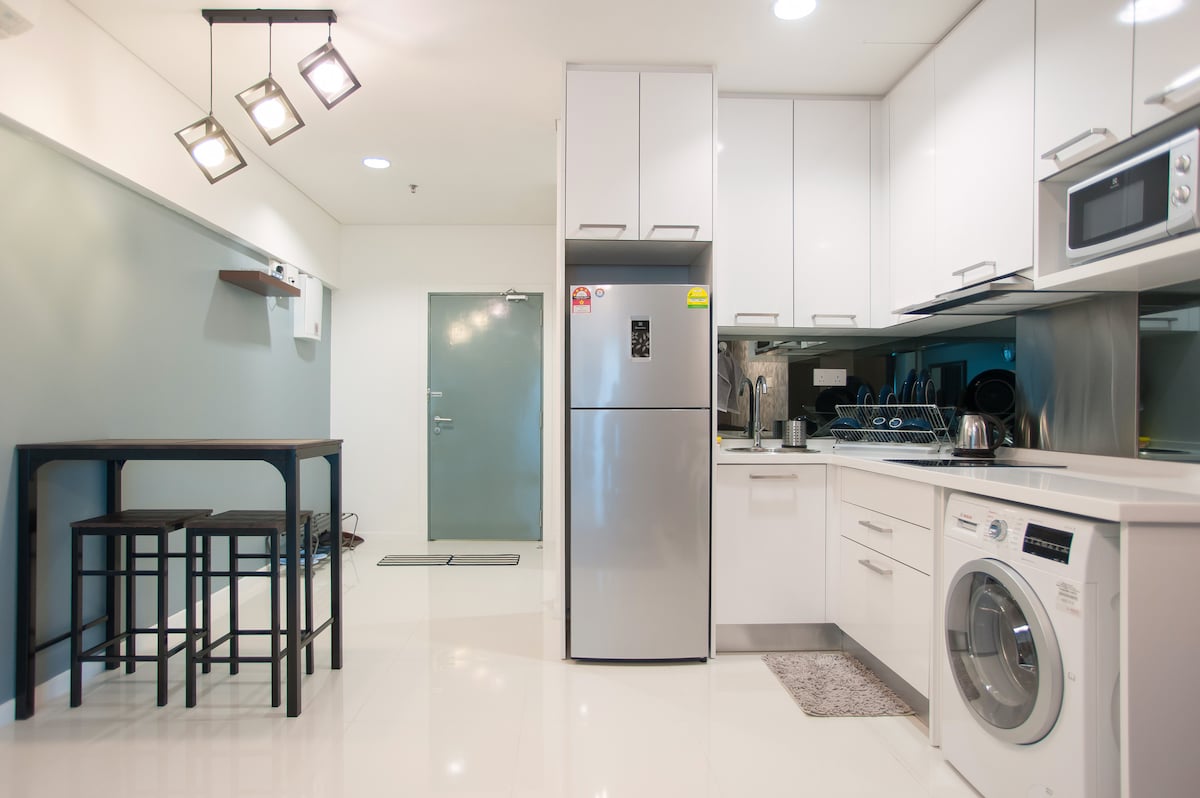 Alójate en 188 Suites KLCC, un espacioso departamento de 908 pies cuadrados de un dormitorio, anteriormente parte de un apart-hotel de cinco estrellas. Los huéspedes disfrutan de acceso total al gimnasio y a la piscina. La unidad incluye un vestidor, cocina completa con utensilios, lavadora, plancha, secador de pelo y un filtro de agua potable. Relájate en la bañera o bajo la ducha con cascada. Se proporcionan artículos de tocador y se incluye un estacionamiento de cortesía.