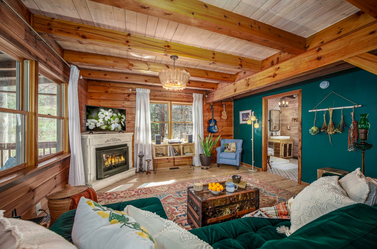 Nestled on 2 peaceful acres, Wild Fox Cabin blends rustic charm with modern comfort. This vintage log cabin features chic décor, a king bed, a queen pullout sofa, a fully equipped kitchen, fast WiFi, air conditioning, and an outdoor fire pit for cozy nights. Relax on the porch, spin records while cooking, or unwind by the bonfire. Just 22 mins from Asheville, 15 mins from Blue Ridge Parkway, and 50 mins from Great Smoky Mountains. A perfect retreat for nature lovers and adventurers.