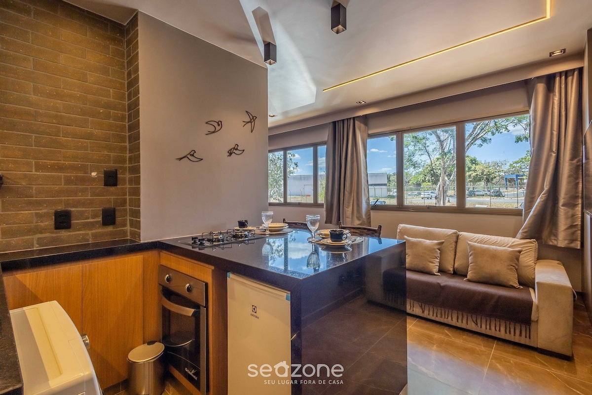 Venga a disfrutar de este estudio, diseñado para que el huésped tenga una experiencia increíble. El estudio es ideal para 1 pareja y 1 persona más. Con un área de 30m2, cuenta con: - TV con canales; WiFi; Sofá cama; Cama queen; Secador de pelo; Ropa de cama/baño; Espacio de trabajo; Cocina; Nevera; Microondas; Horno eléctrico; Plancha y tabla de planchar/Lavadora y secadora; Muy cerca de centros comerciales, restaurantes, Parque da Cidade y Parque do Bosque, bares, cines, hospitales y la Explanada de los Ministerios.