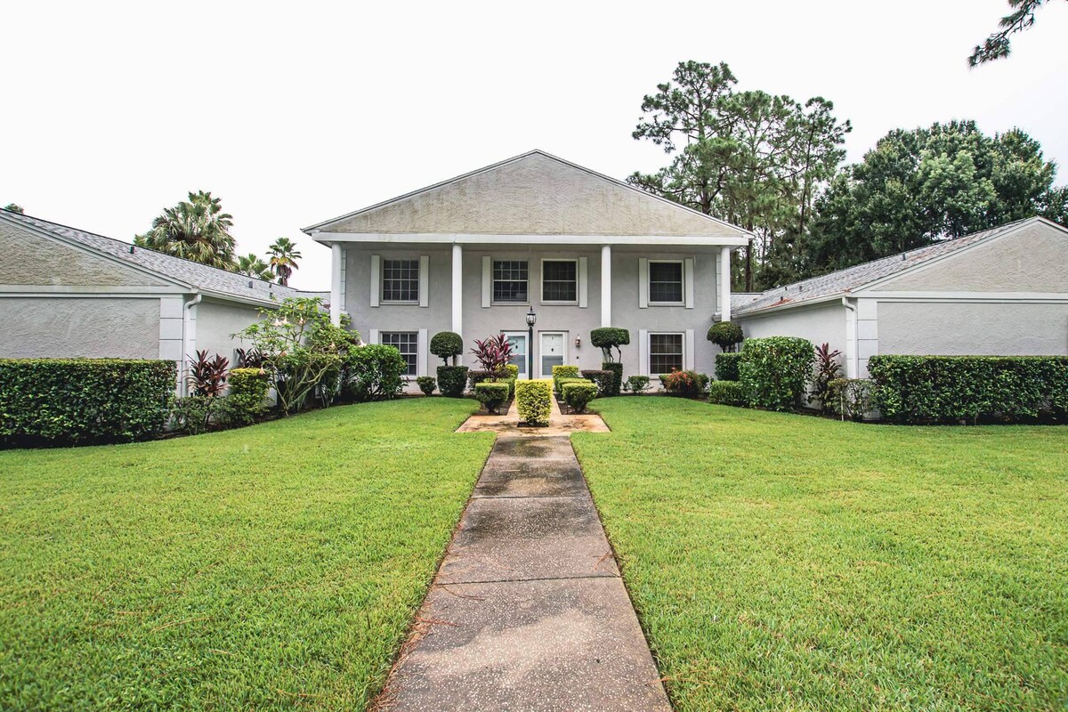 Unidad de 2 dormitorios y 2 baños en el primer piso junto al lago en Saddlebrook. Recién reformado y amueblado con una decoración moderna de mediados de siglo. La unidad está a menos de 40 minutos del Aeropuerto Internacional de Tampa y del centro de Tampa. También se encuentra cerca del Advent Health Wesley Chapel Hospital y del Moffit Cancer Center. También se encuentra a 10 minutos del Advent Health Center Ice para todas tus necesidades de hockey sobre hielo y patinaje artístico. Aproximadamente a 1 hora de Clearwater Beach y a 1 hora y 20 minutos de Disney World.