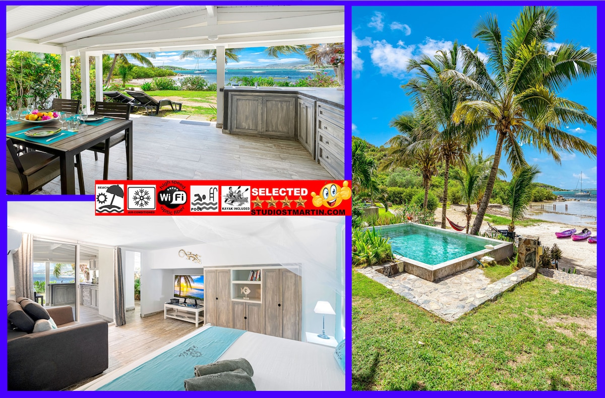 Villa Marine es una villa "caribeña" completamente nueva y contemporánea con acceso directo a la bahía del callejón sin salida... ¡justo en el agua! 2 grandes dormitorios con camas tamaño queen, con baños completos, cocina totalmente equipada de moda con una isla central para tus aperitivos, una gran sala de estar con mesa y sillas para tus comidas en el interior que se abren a una terraza que también ofrece una mesa y sillas para 6 personas, la piscina y el jardín frente a ti... el estacionamiento privado está a tu disposición.