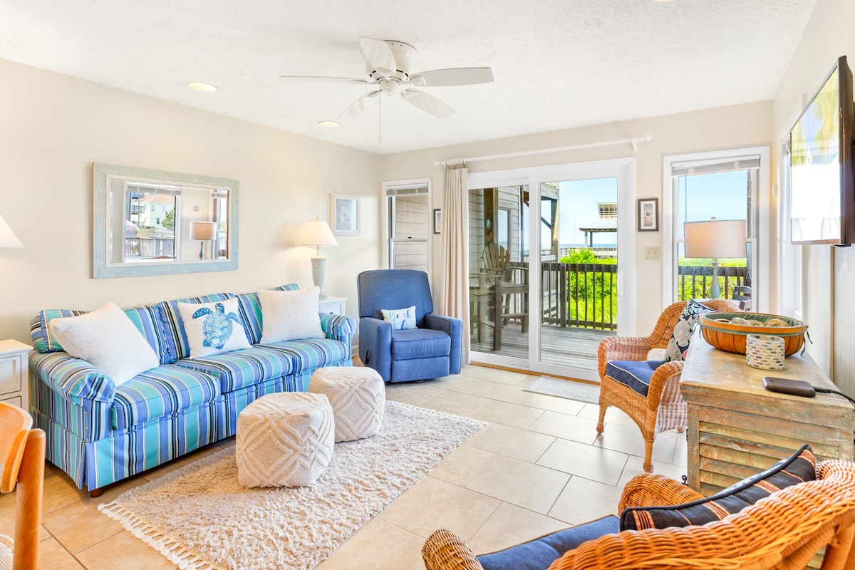 OCEANFRONT, apartamento en el segundo piso en el corazón de Duck, Carolina del Norte, a pocos minutos de la playa, tiendas, restaurantes y carriles bici públicos en esta encantadora ciudad. ¡Nuevos suelos, electrodomésticos, cocina totalmente equipada y ropa de cama cómoda complementan este refugio vacacional! Las comodidades incluyen una piscina comunitaria, una terraza en la cima de la duna y un paseo marítimo comunitario hasta la playa. Cómoda y amplia sala de estar para 5 personas. Gran terraza de 10 x 14 ideal para disfrutar del café de la mañana relajándose. Tenis, pickleball/baloncesto y parque infantil para niños.