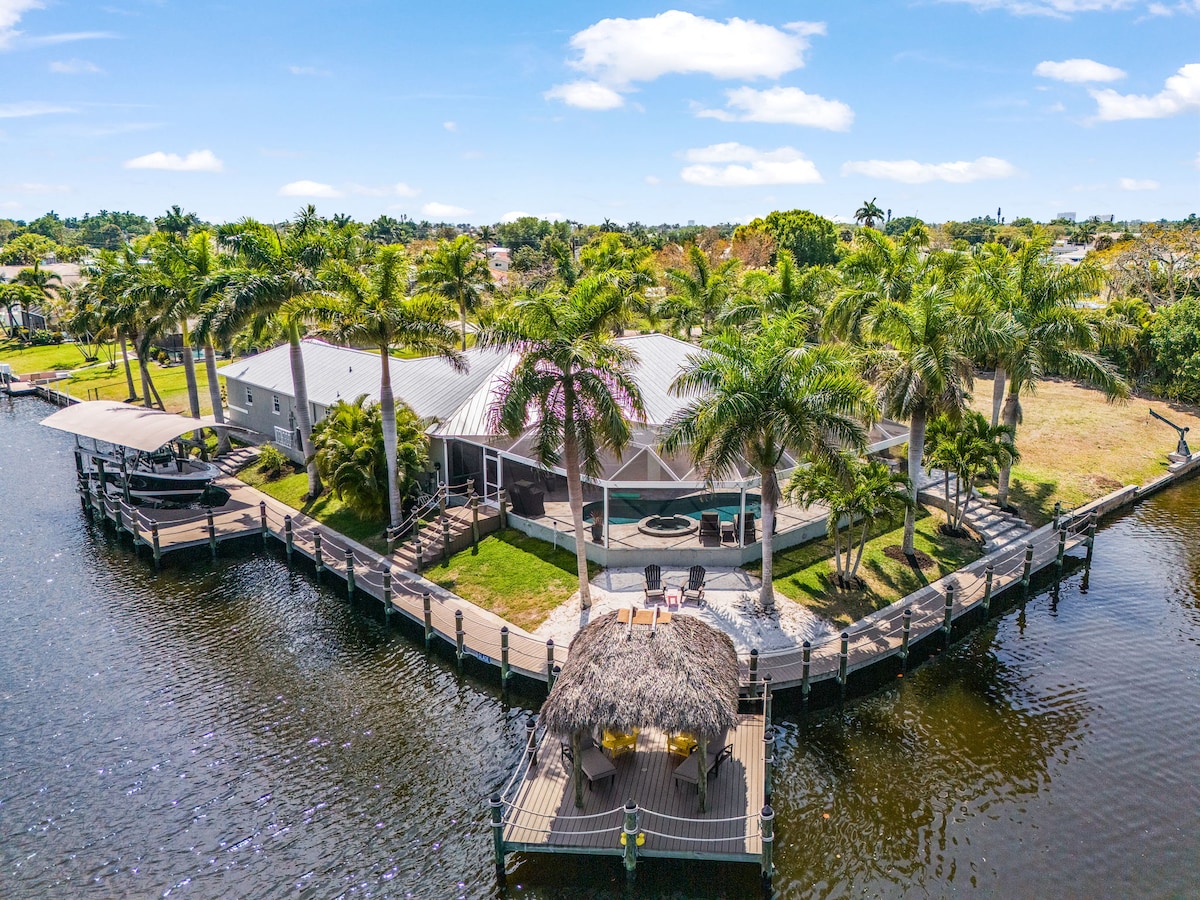 Muelle, cabaña Tiki, piscina/spa - ¡INCREÍBLE! - Casa Luxe Palmera