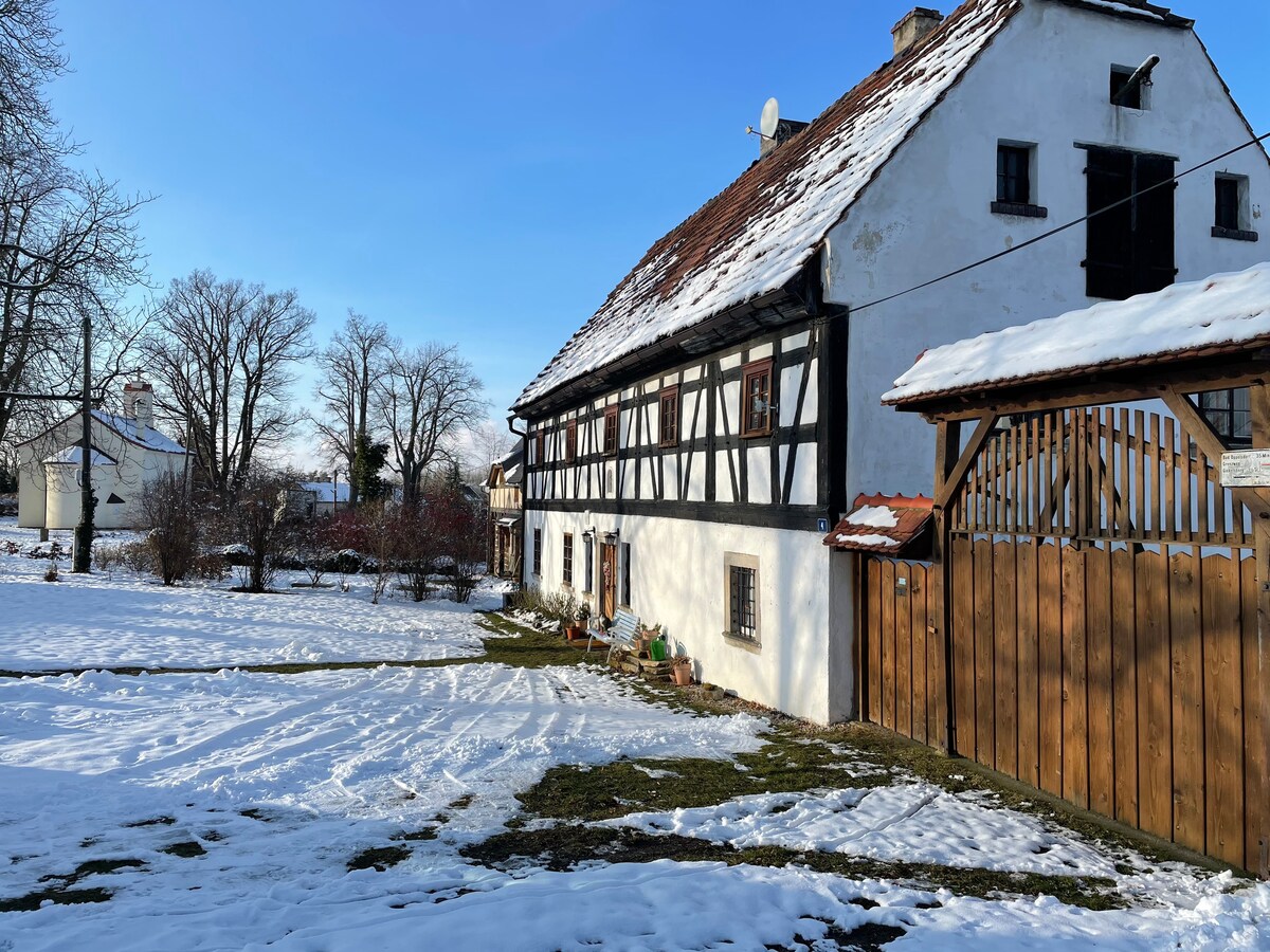 Bienvenido a nuestra casa de 250 años, donde convertimos un antiguo granero en una habitación de invitados con una pequeña esquina de cocina y un baño privado. Nuestro apartamento también tiene una entrada independiente, por lo que la total privacidad está garantizada. Estacionamiento privado. Liberec está a solo 20 minutos en auto, el centro de Zittau a 15 minutos, las montañas Jizera a 30 minutos, las montañas Luzice a 15 minutos. Muchos lugares interesantes en 30 minutos en auto. Pista de ciclismo justo en el pueblo, excelentes pistas de esquí de fondo y pistas de esquí en 30 minutos.