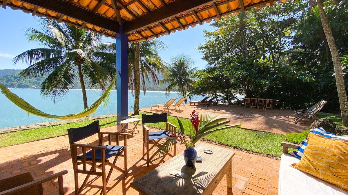 Encantador chalet frente al mar con sala de estar conectada con cocina y sofá cama, un dormitorio, un gran balcón, un baño completo, jardín con ducha y muchos árboles, wifi de alta velocidad. Acceso a la casa a pie (10 minutos) desde el estacionamiento (calle Maria Caetana). Ayuda con el transporte de equipaje.