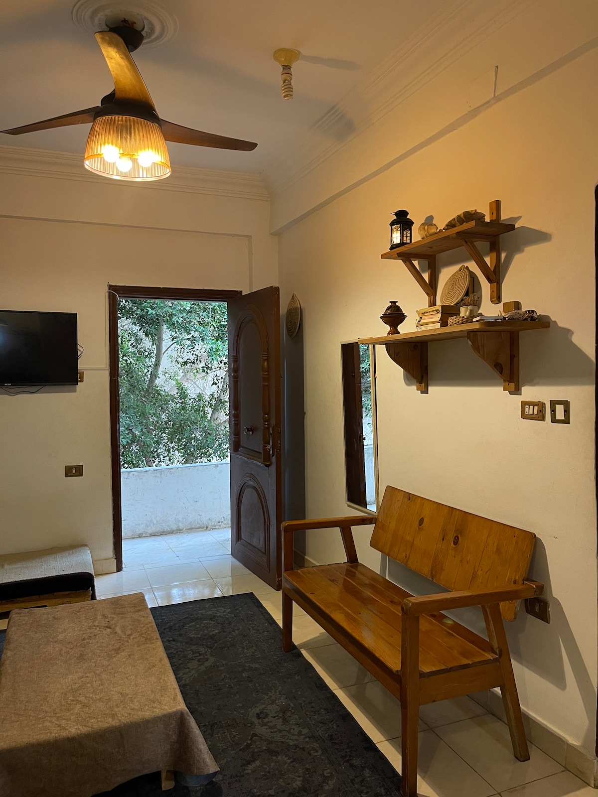 ubicado en Eel Garden en Dahab, frente a la plaza del reloj, de fácil acceso, ya que se ve directamente en la carretera principal, a 2 minutos del mar, entre el principal mercado local de Assalah, el faro y la cresta marítima de la ciudad. Tiene 1 dormitorio con una cama doble, sala de estar, cocina, baño y fácil acceso a la azotea. El apartamento está limpio y ordenado, aire fresco y luz solar desde todas las ventanas desde las cuatro direcciones, ya que es un edificio independiente, junto a la privacidad, ya que el edificio tiene 2 estudios.