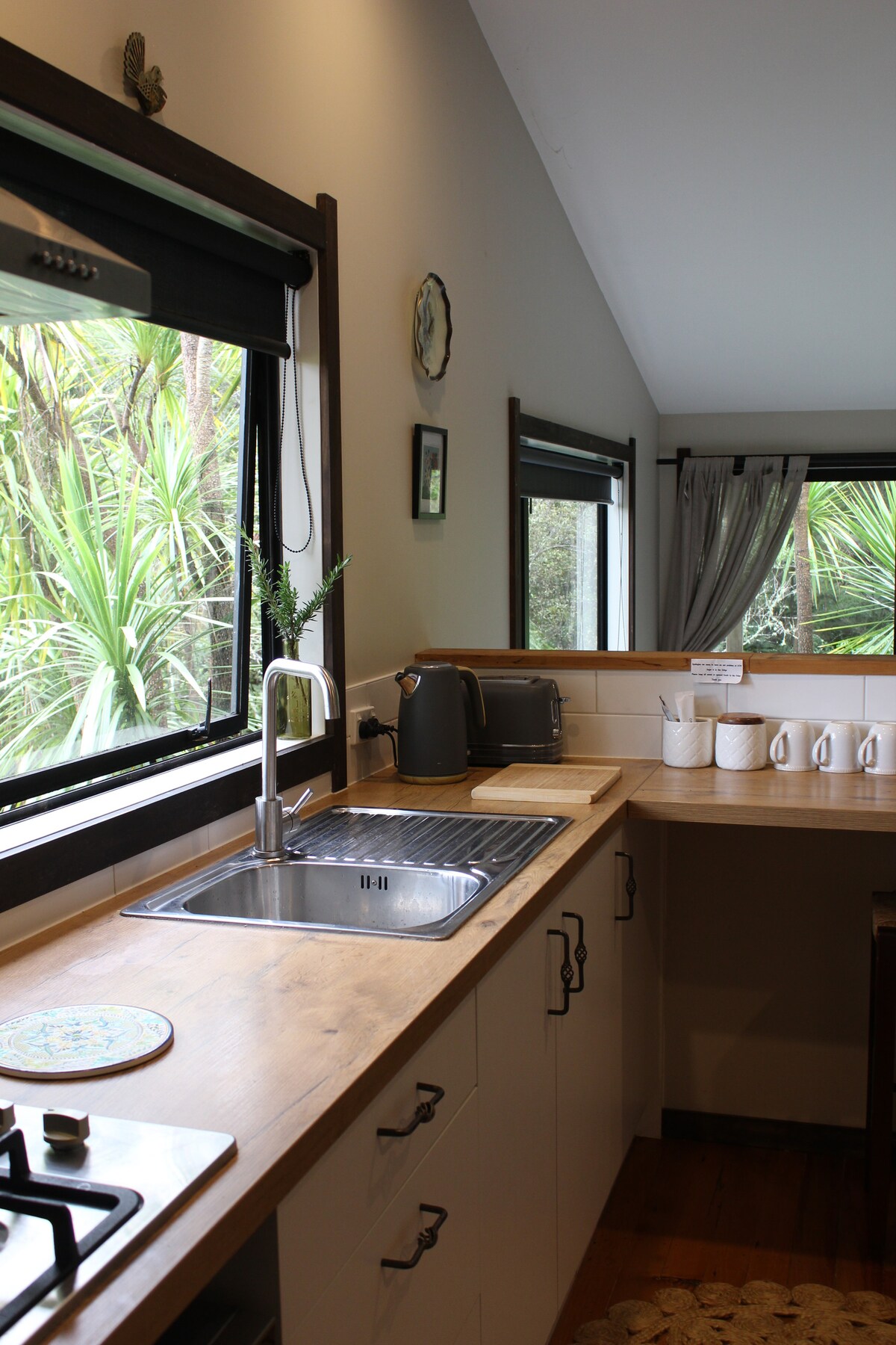 Wake up surrounded by native bush, a peaceful valley at the base of the protected Waitākere Ranges. From the comfort of your bed, take in the view through beautifully crafted timber-framed windows and watch the landscape slowly come to life. Listen to native birds calling through the forest while soft morning light filters through the trees. Whether you’re sipping coffee on the deck, or simply soaking in the quiet, Dreamlands Cottage invites you to slow down and escape from the everyday hustle