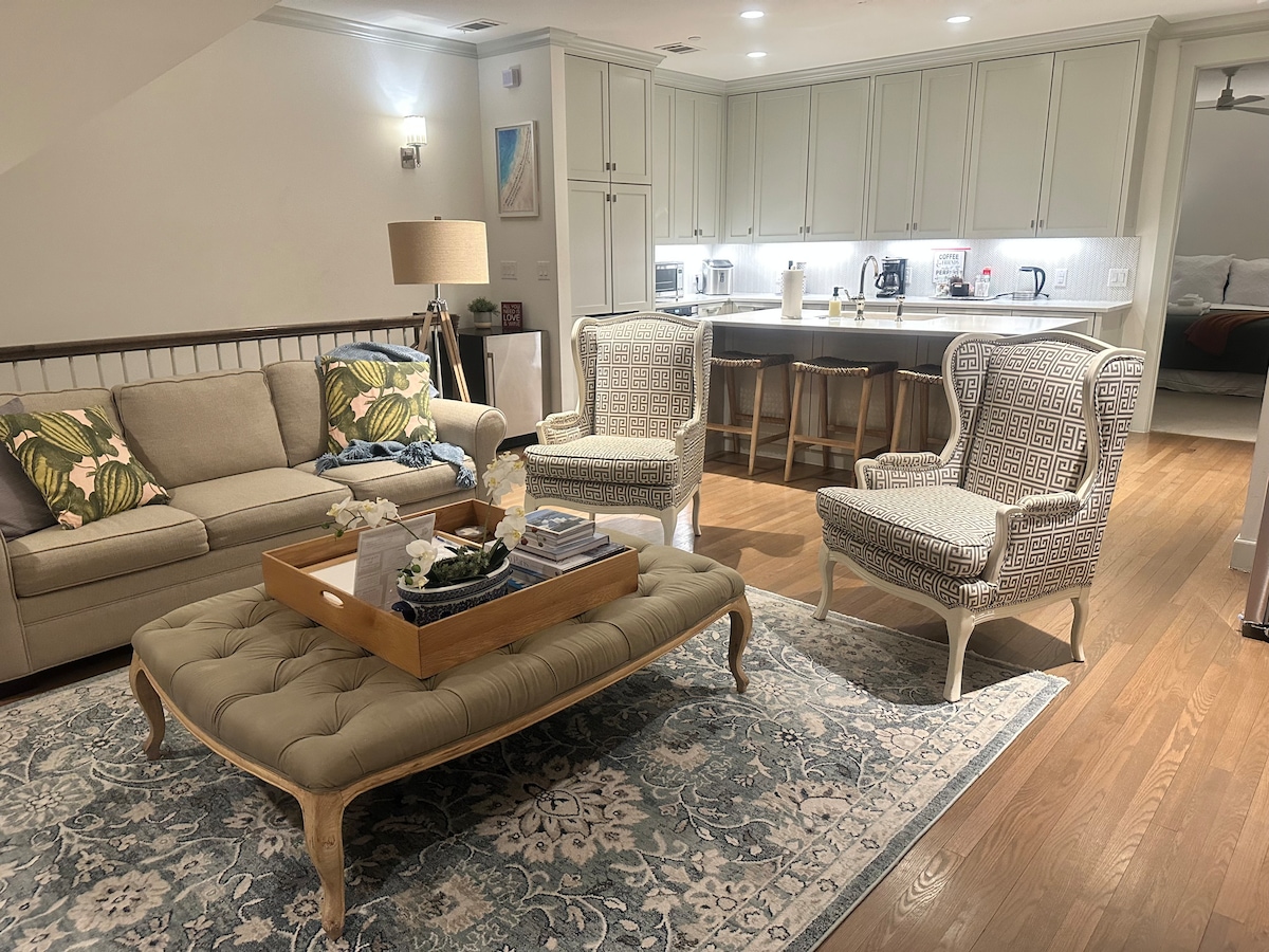 Get the best of urban living in this tucked away luxury townhouse! Enjoy everything from cooking your heart out in the fully equipped luxury kitchen, to kicking back in front of the 86” TV (YouTube TV, Netflix, Disney+), or just simply enjoy a cocktail on the back patio! Luxury linens (1200 thread-count sheets, RH towels, amazing mattresses), well equipped bathrooms, walk-in closet, etc. If business travel is your game, enjoy high speed WiFi and a full desk for your workspace!